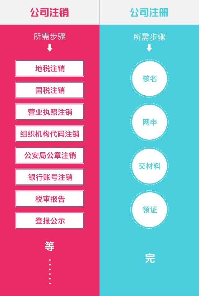 先來看看公司注銷和公司注冊的流程圖!你就知道為什么注銷公司比注冊公司難了!