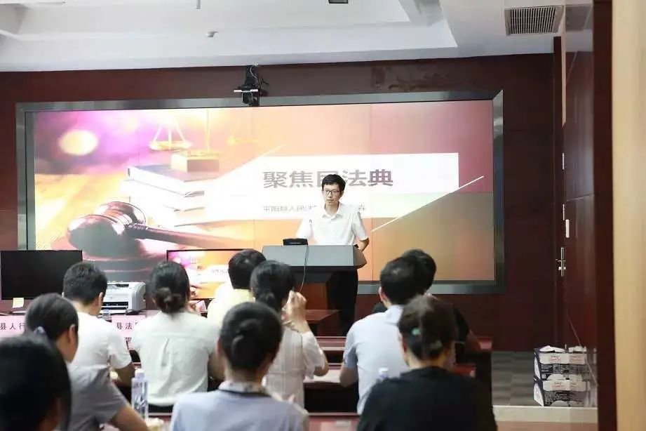 培訓(xùn)會由毛振淼法官授課,聚焦《民法典》的重大意義、編纂歷程、主要內(nèi)容三大方面進行詳細講解。培訓(xùn)會后,平陽縣稅務(wù)局團委書記作為青年代表之一,以“《民法典》中的稅念”為題,分享了《民法典》對稅務(wù)優(yōu)先權(quán)的豐富等涉稅啟示,為與會青年代表共同學(xué)習(xí)《民法典》提供了新的角度。
